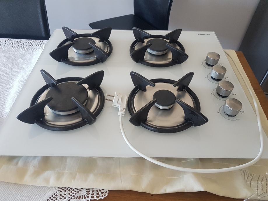 Prodajem staklenu bijelu ploču za kiuhanje,4 plina,marke končar u odličnom stanju.Prodajemo iz razloga sto smo morali kupit ploču na struju.Cijena 150 € ,kontakt 098777821