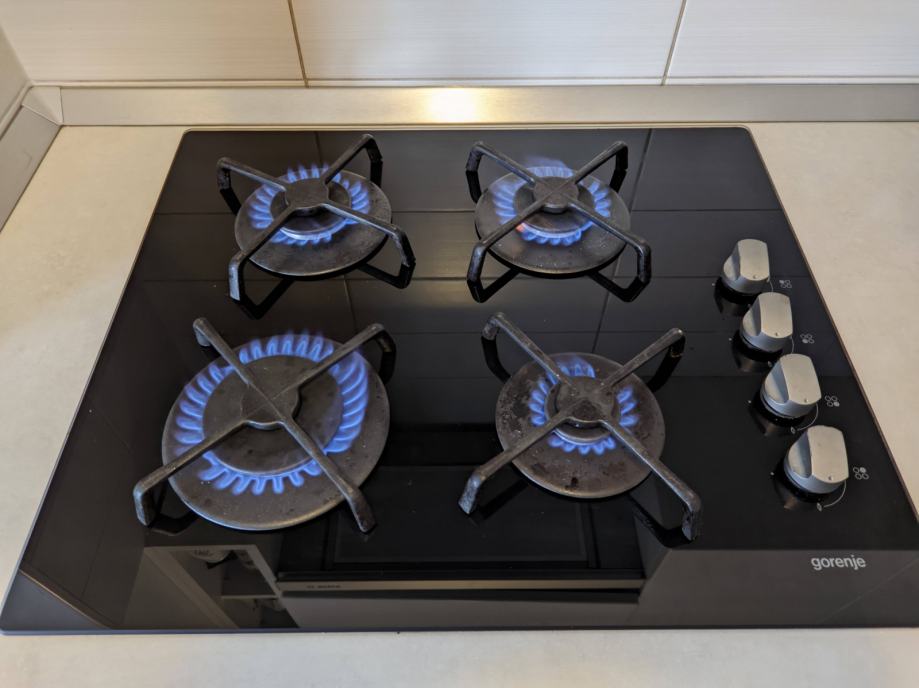 Broj zona za kuhanje: lijevo sprijeda: 90 mm, 3 kW, veliki plamenik, desno sprijeda: 50 mm, 1 kW, plamenik, lijevo straga: 60 mm, 1,75 kW, srednji plinski plamenik, desno straga: 60 mm, 1,75 kW, srednji plinski plamenik