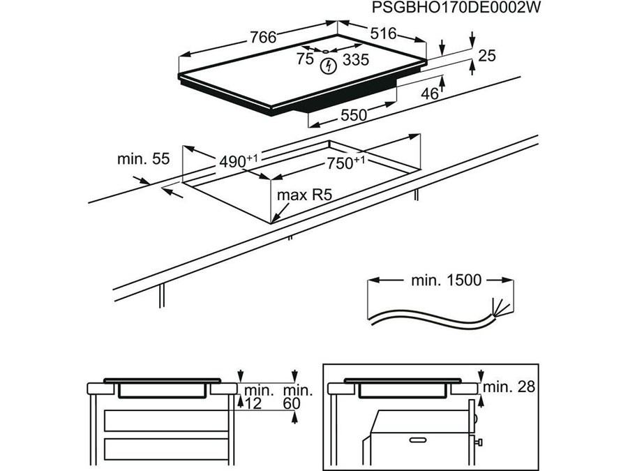 BI dimensions HxWxD in mm: 46x750x490