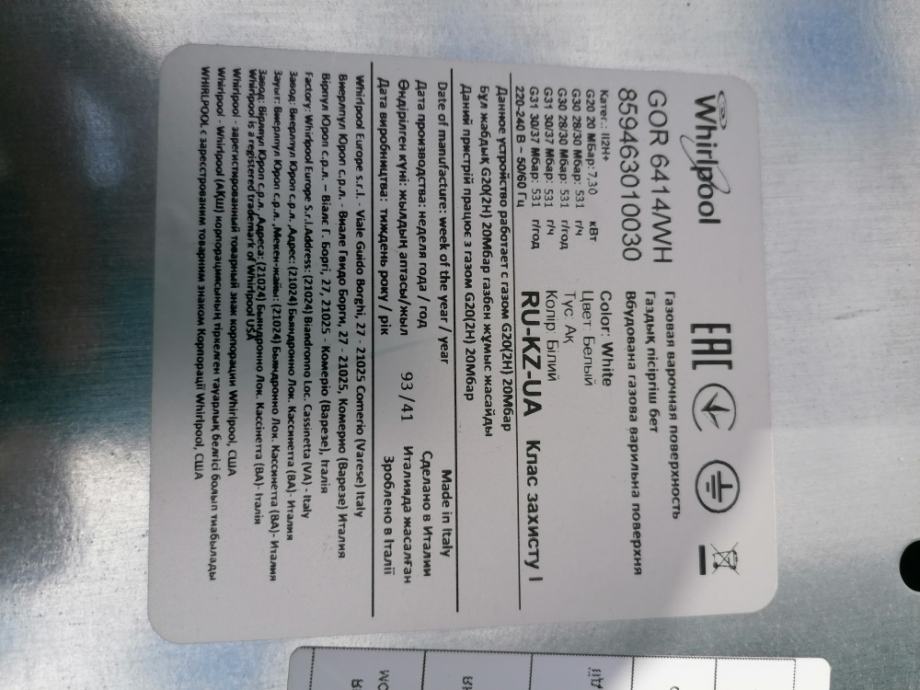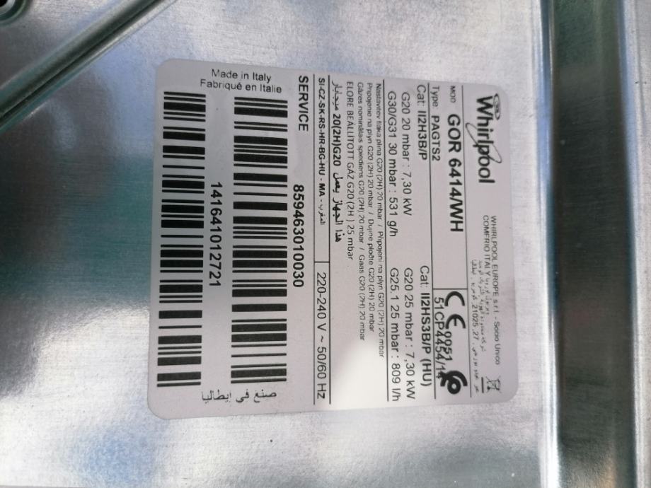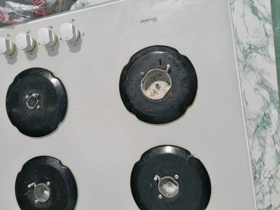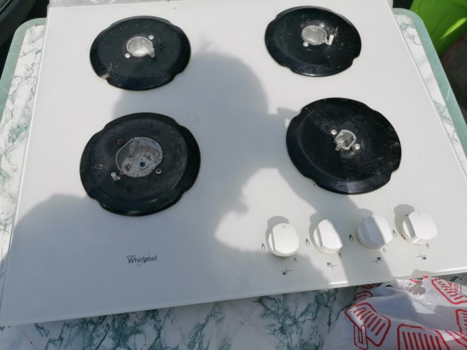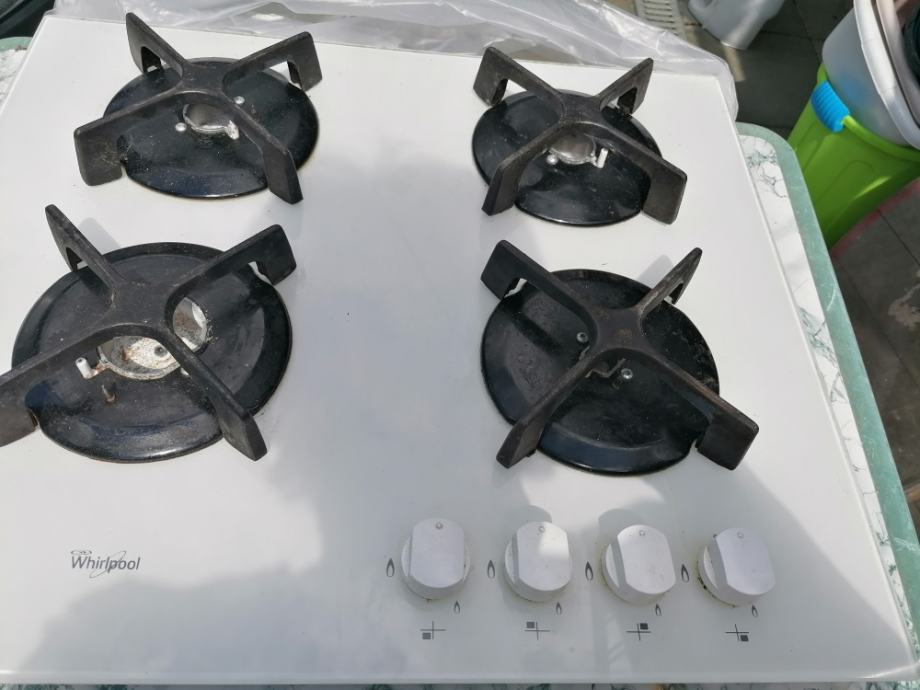 Bijela staklena ploča plinskog štednjaka Whirlpool, 4 kola, malo korištena, za 80 eura prodajem. Mob 098 91 83 180