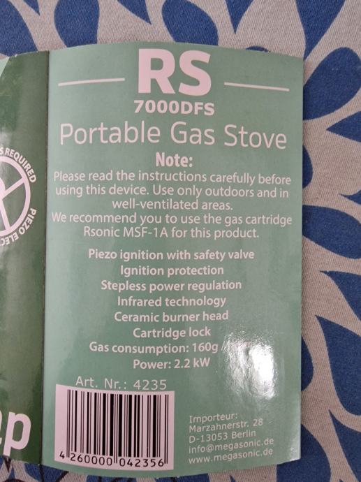 Prijenosni plinski stednjak za kampere na plinske patrone
