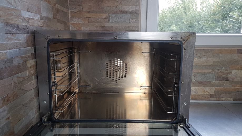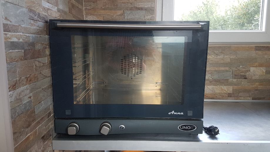 Prodajem peć UNOX Ana koja optimalna je za pečenje raznih peciva, a osim toga jela od ribe, mesa i povrća. Korištenjem procesne opreme za pečenje znatno je ubrzan rad , koji pruža mogućnost istovremrnog pečenja 4 plehova. Konvekcijska pećnica ima mogućnost pečenja na minimalnoj temperaturi 80 ° C, a maksimalna temperatura iznosi oko 260 ° C, tajmer do 60 minuta. U konvekcijske peći su priložene 4 pleha veličine 460х330 mm, udaljenost među plehovima iznosi 75 mm. Nadalje, kako bi proces pečenja u ovim konvekcijskim pećnicama bio maksimalno povoljan, u radnoj komori nalaze se prozirna svjetla rasveta. Također vrlo važno, konvekcijska pećnica je vrlo jednostavna za korištenje i napravljena od nehrđajućeg čelika.