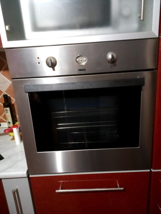Prodajem korištenu ugradbenu pećnicu Zanussi ZOB 654 u ispravnom stanju. Kao što se vidi na slici pokidan je gumb - mehanički programator (sat), kojim se regulira vrijeme trajanja pečenja u pećnici, kao i zaštitna guma (dihtung) na vratima pećnice.