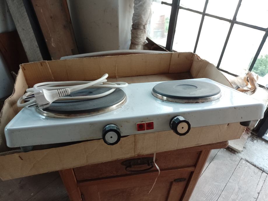 Rešo sa dvije ploče , malo korišten , ispravan ,sa pripadajućim kablom .Snaga 1,5 KW velika ploča , 1 KW mala ploča ,regulirane termostatima.
