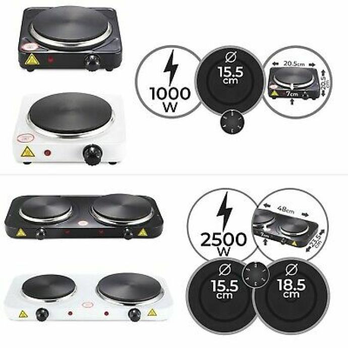 1 x električna ploča za kuhanje jednostruka ili dvostruka KHPT u bijeloj ili crnoj boji