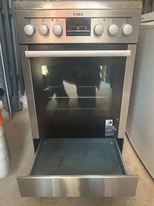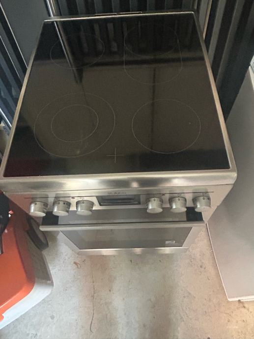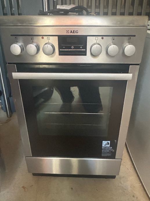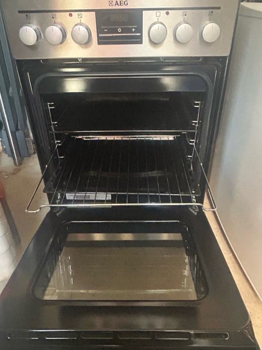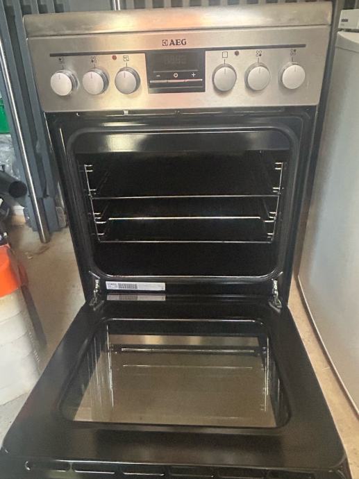 Prodajem samostojeći štednjak s pećnicom marke AEG. Radi se o modelu s keramičkom pločom za kuhanje koja ima četiri zone grijanja. Kućište je u srebrno-inox izvedbi s crnom staklenom pločom na vrhu.