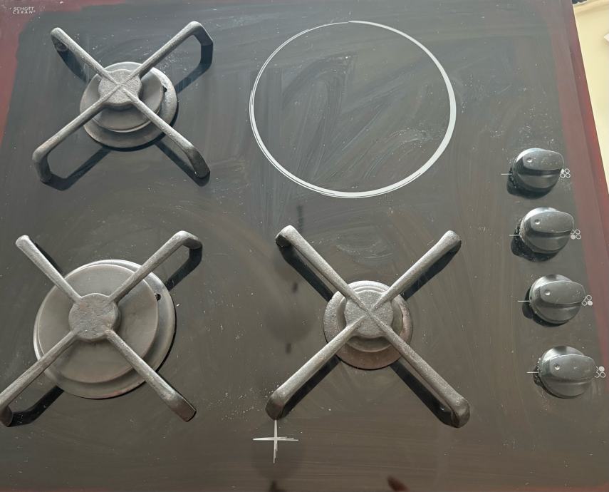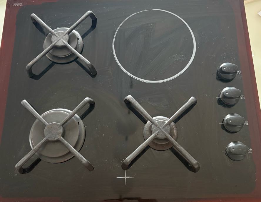 Prodajem staklokeramičku ploču Gorenje s kombinacijom 3 plinska i 1 električnog kuhališta. Ploča je izrađena od Schott Ceran staklokeramike, poznate po kvaliteti i izdržljivosti. Upravljanje je putem četiri okretna regulatora smještena sa strane ploče.