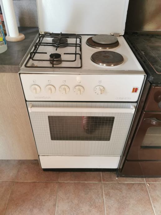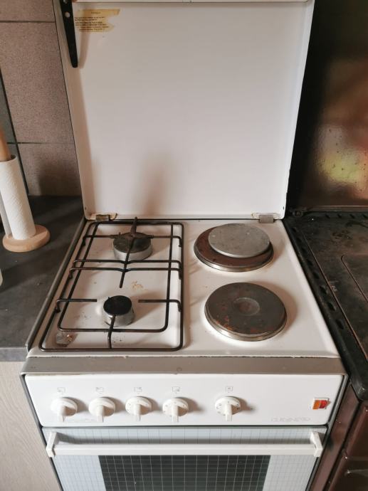 Stednjak 2plin plus dva struja, plus pecnica na struju, sve ispravno, mi smo imali na bocu ali se moze sloziti I na gradski plin