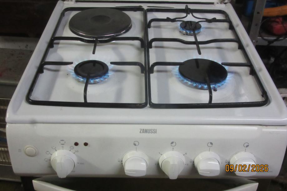 Prodajem štednjak Zanussi sa 3plina + 1struja i pećnicom na struju, 50cm, bijeli, ima poklopac i ladicu , u dobrom je stanju, električno paljenje plinova, očiščen, potpuno je ispravan, namješten na plin iz boce, Umag