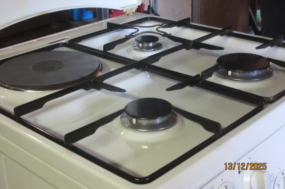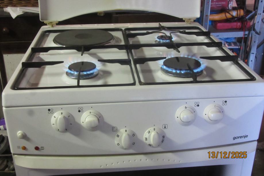 Prodajem štednjak Gorenje 3x plin 1x struja, 60 x 60 cm, električno paljene plinova, poklopac i ladica, ispravan, očiščen, u odličnom stanju, radi na plinsku bocu, Umag