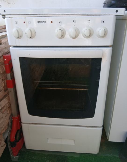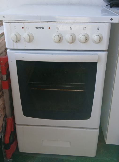 Prodajem štednjak Gorenje u bijeloj boji. Kombinacija je plina i struje, s 3 plinska ringa i 1 električnim ringom. Uređaj ima pećnicu s rešetkama .