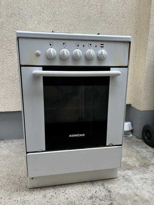 Štednjak končar 55 širine, sve ispravno, 3 plinska plamenika ( propan butan ) jedan strujni, pečnica na struju