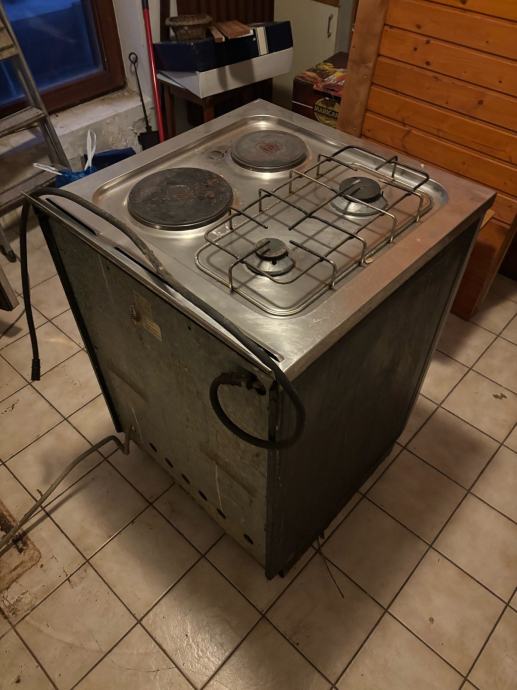 Prodajem rabljeni štednjak s kombinacijom plinskih plamenika i električnih ploča. Štednjak ima pećnicu i praktične kontrolne gumbe na prednjoj strani. Uređaj je u funkcionalnom stanju, idealan za svakodnevno kuhanje.