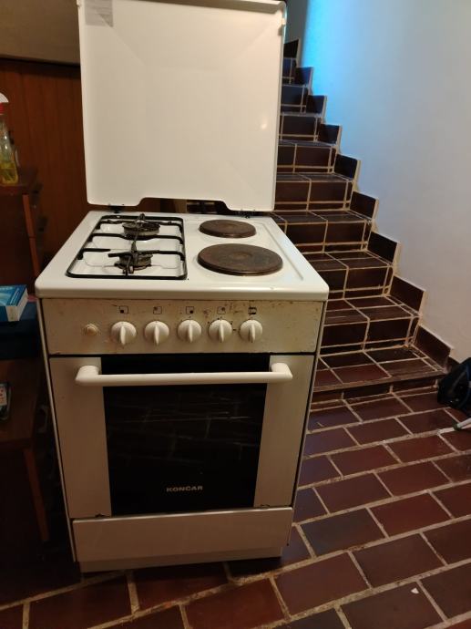 Potpuno ispravan štednjak, širina 55 cm, sa plehom / pekačem i rešetkom u pećnici.