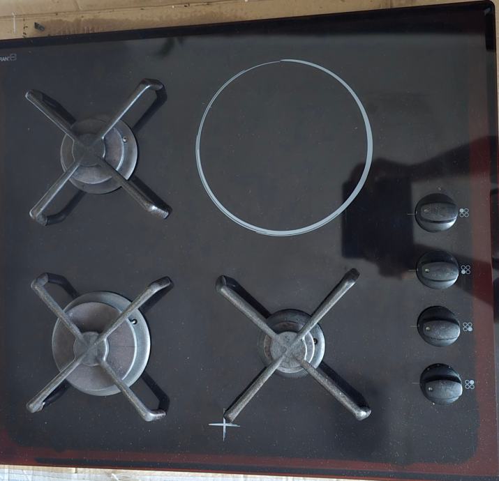 Prodajem kvalitetnu ugradbenu kombiniranu ploču za kuhanje (3 x plin + 1 x struja). Boja: crna. Širina 60 cm.