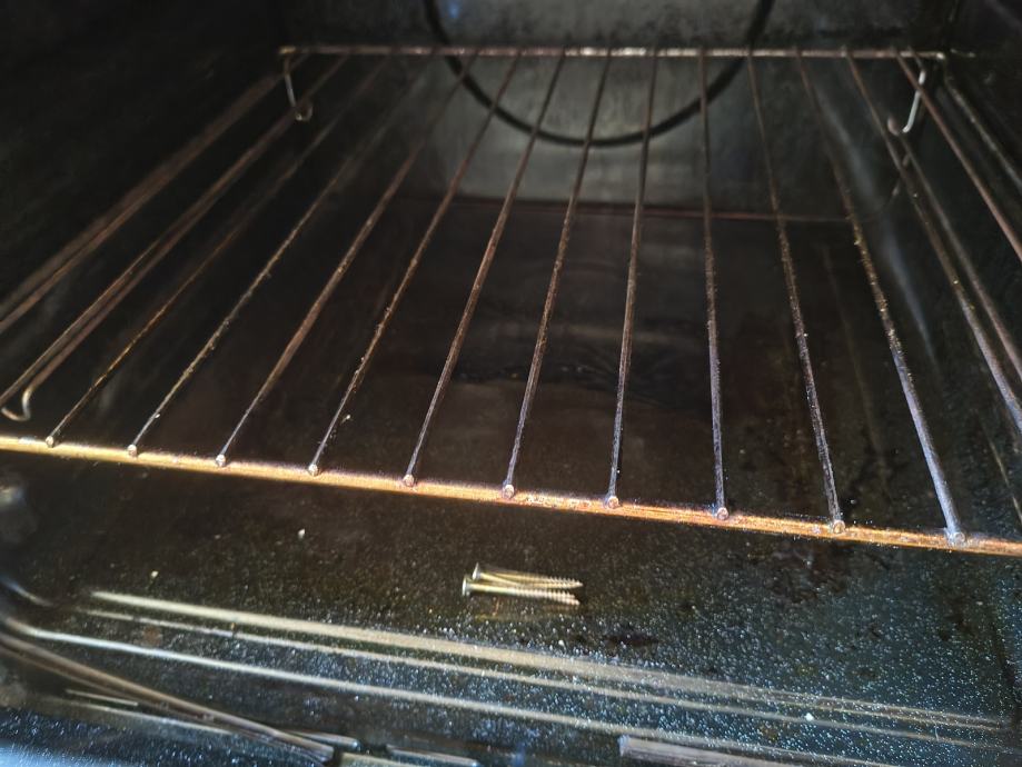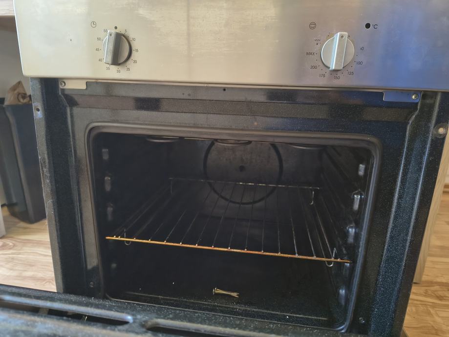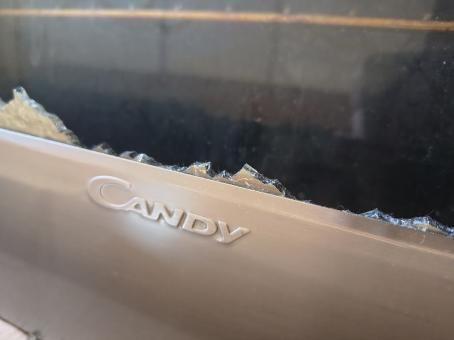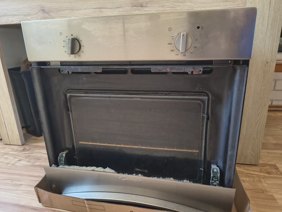 Staklo na vratima je razbijeno, ali ostatak pećnice je ispravan.