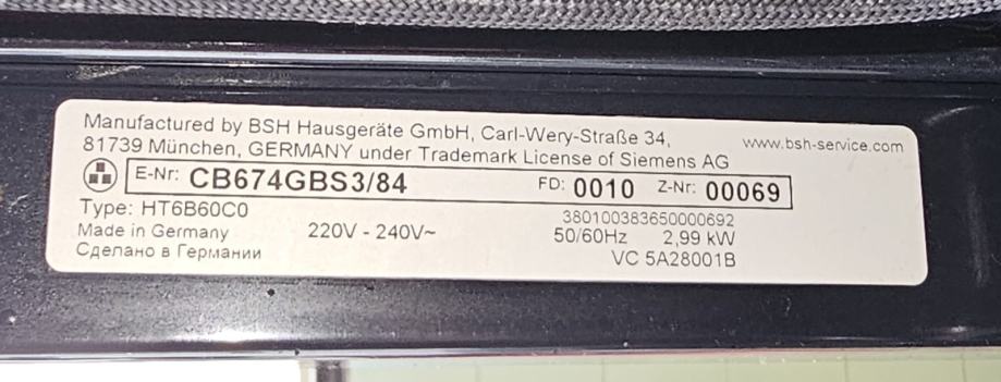 Ugradbena pećnica EEK A+ SIEMENS CB674GBS3 [energetski razred A+]