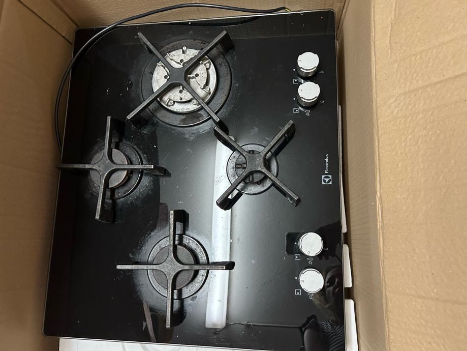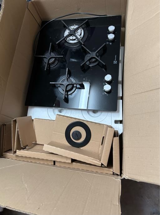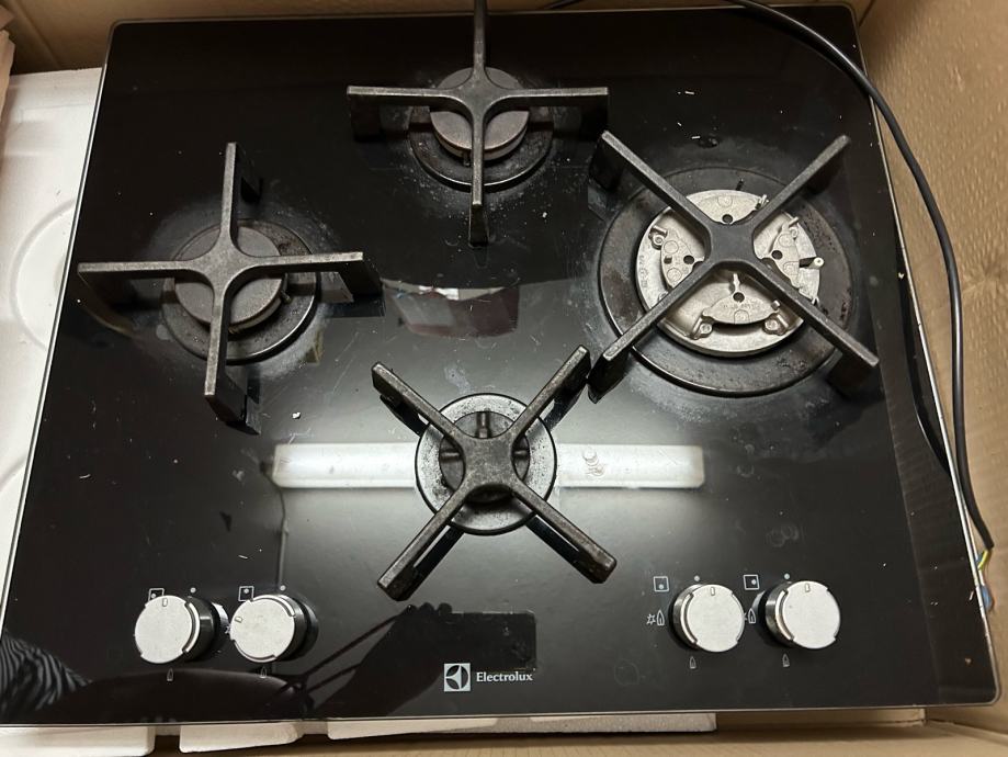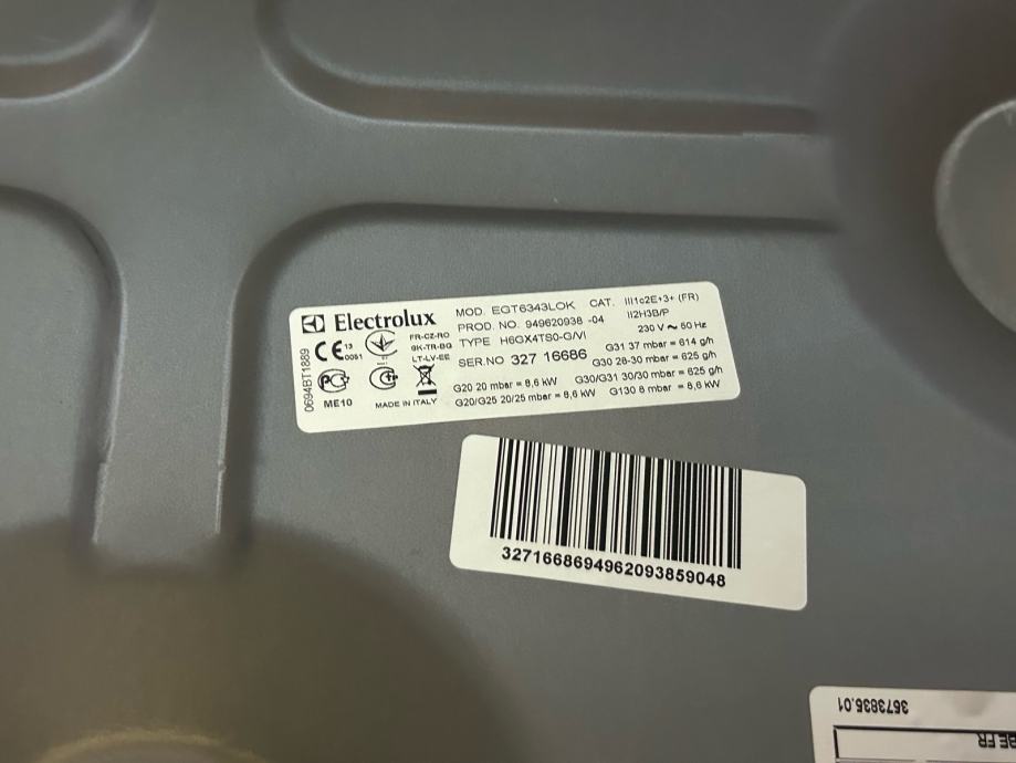 Ugradbena plinska ploča za kuhanje Electrolux EGT6343LOK s četiri plinska plamenika koji imaju integrirano električno paljenje.