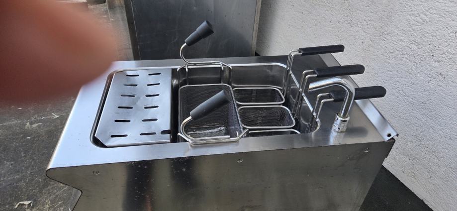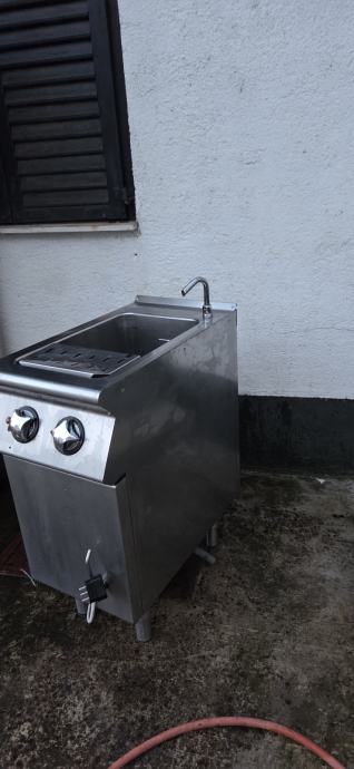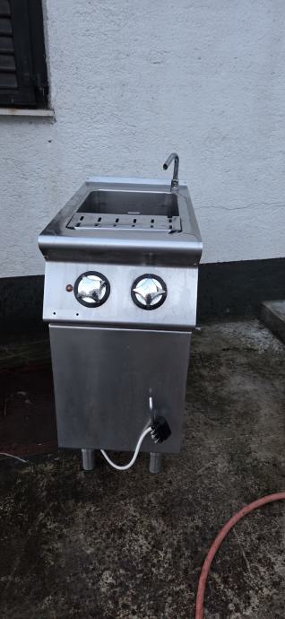 Prodajem ugostiteljsko kuhalo za tjesteninu izrađeno od nehrđajućeg čelika. kao i s rešetkom za odlaganje. Na prednjoj strani nalaze se dva regulatora temperature, a uređaj ima i priključak za ispust vode. Kućište je stojeće izvedbe, kompaktnih dimenzija, prikladno za postavljanje u profesionalnu kuhinju