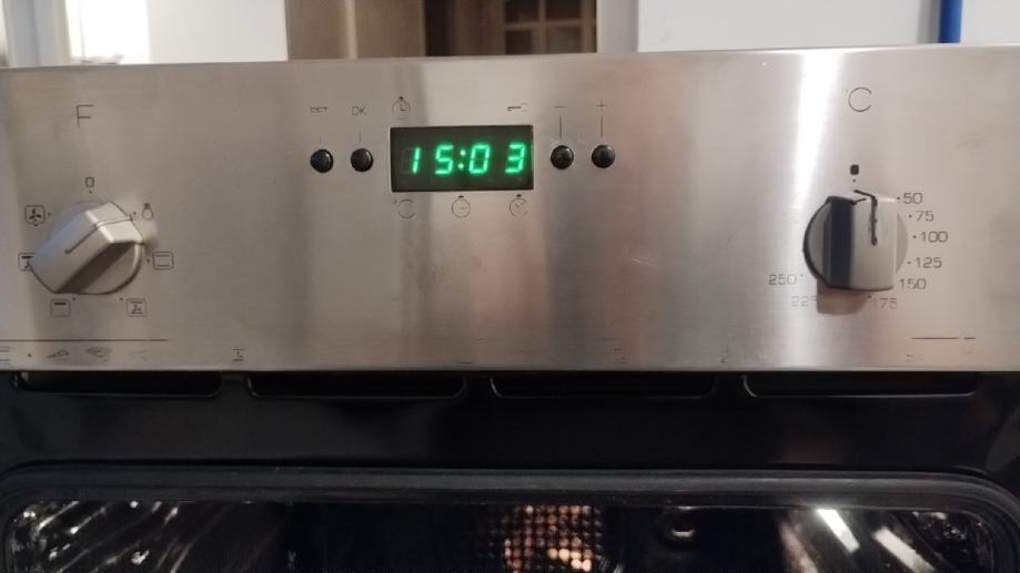 Funkcije: unutarnje osvjetljenje, statično gornje i donje grijanje, ventilator + statično gornje i donje grijanje, roštilj, roštilj + ventilator (turbogril)