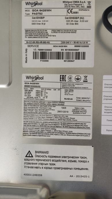 Model Whirlpool ploča GOA 6425/WH u odličnom stanju.