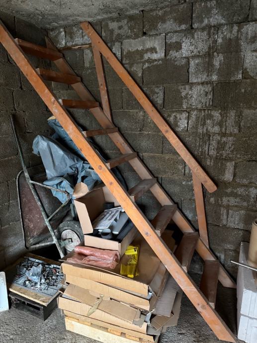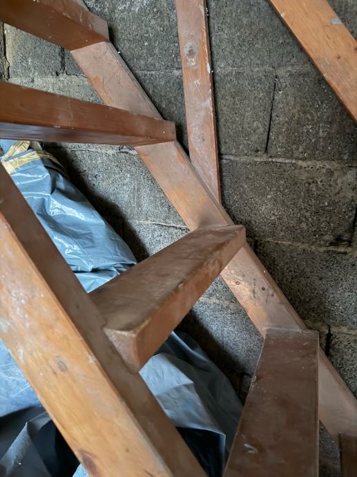 Drvene stepenice, 220cm stropa otprilike, mogu se prilagoditi. Imaju rukohvat.