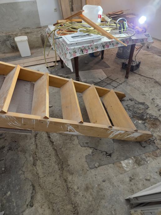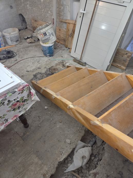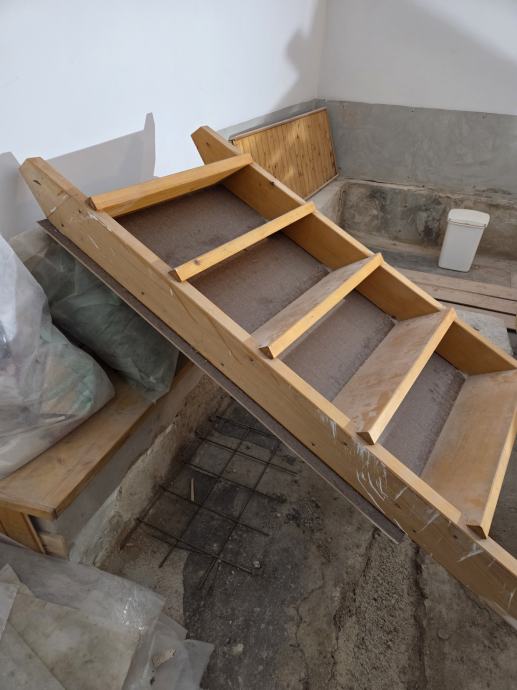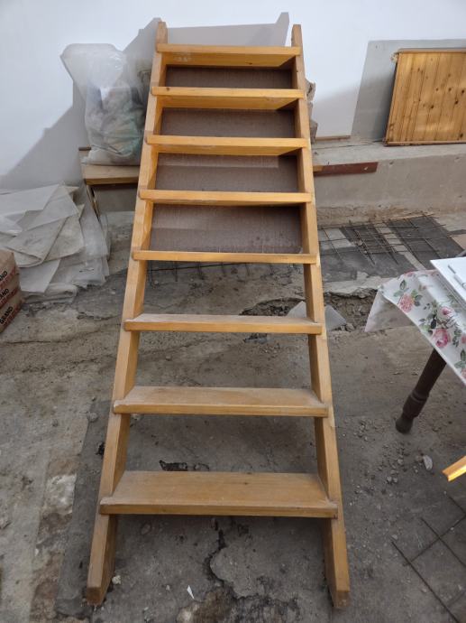 Drvene stepenice sa ogradom ba desnoj strani. Kada su postavljene pod kutom od cca 50°, visina je 230 cm, širina 78 cm.