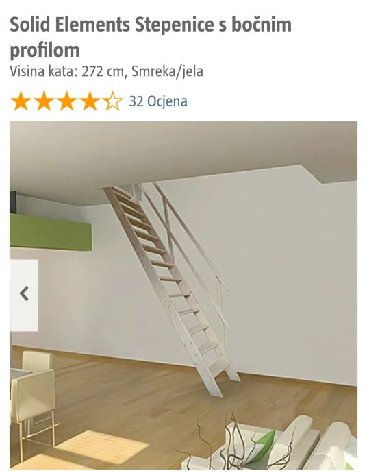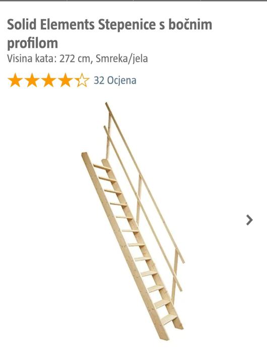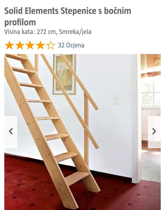 Neotvorene drvene stepenice s rukohvatom kupljene u Bauhausu, nikad montirane, u originalnom pakiranju.