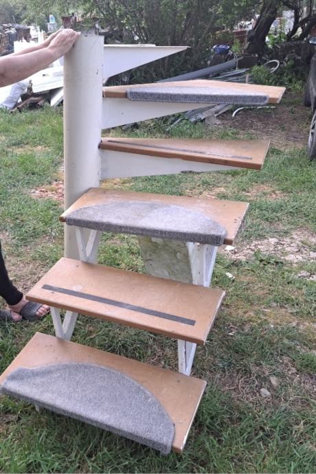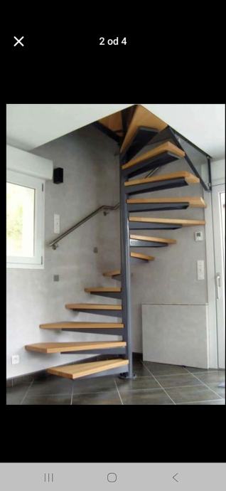 Prodajem kružne stepenice visine 243,širina 150.Iz stepenice dajem nove tepihe.Moguć dovoz i montaža.Prva slika je kako otprilike izgledaju montirane.