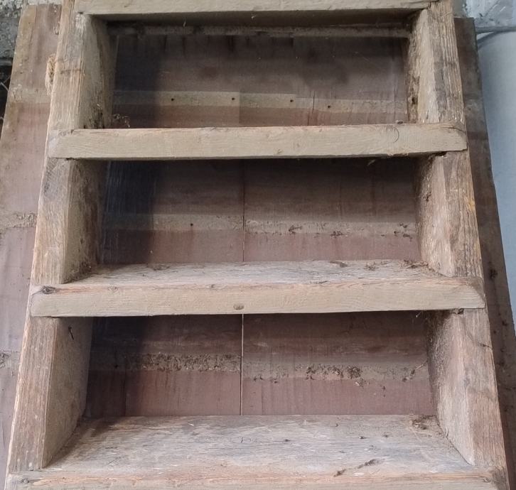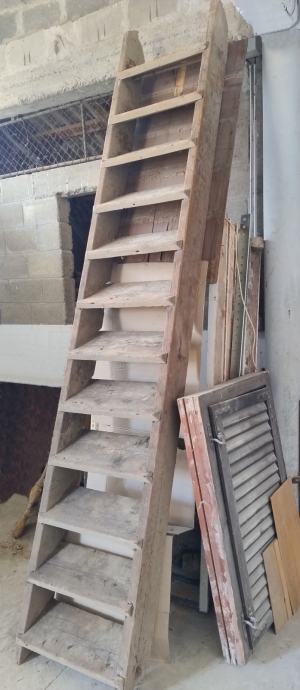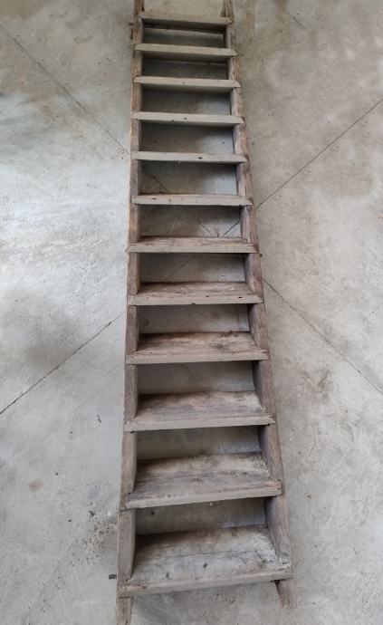 Prodajem stare drvene stepenice, ručni rad od masivnog drveta. Stepenice su konstrukcijski čvrste, ali estetski zahtijevaju obnovu (brušenje i lakiranje/bojanje). Na slikama su vidljivi tragovi korištenja i manja oštećenja drveta.