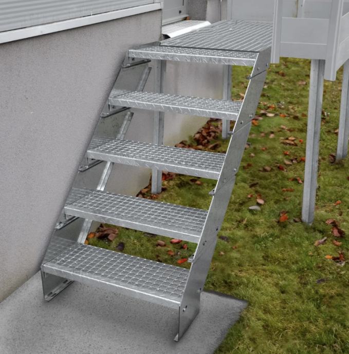 Precizno dizajnirane, svaka stepenica ima prostrano gazno područje širine 900 mm i dubine 240 mm. Njihova robusna debljina gazne ploče od 3 mm i potporne šipke od 5 mm doprinose njihovoj ukupnoj čvrstoći.