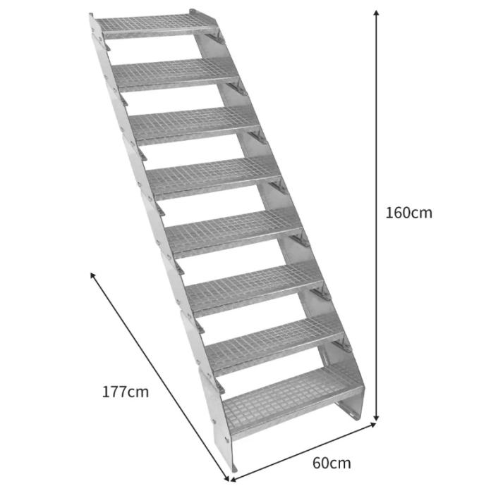 Povećajte svoje mogućnosti pristupa našim podesivim pocinčanim stubištem s 8 stepenica, pružajući vam pouzdan pristup koji se može prilagoditi vašim potrebama.