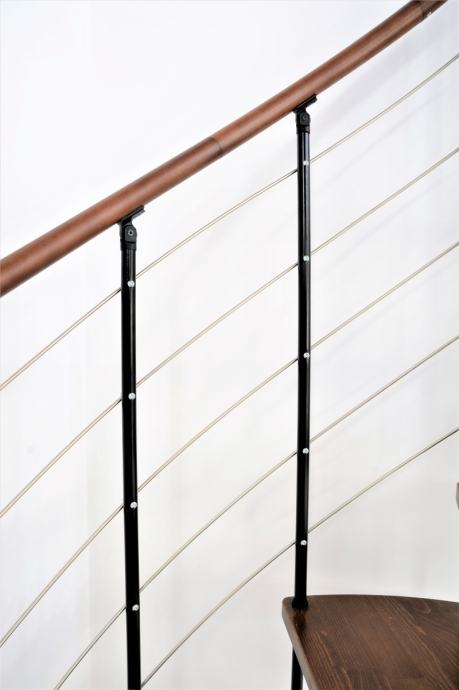 Materijali koji se koriste u izradi spiralnih stepenica jamče dugi vijek trajanja. Metalni dijelovi lakirani su powder-coating tehnologijom dok su drveni elementi zaštićeni završnim lakom.