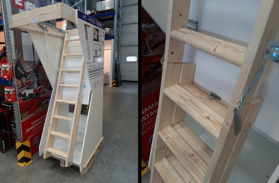 Termoizolacijske tavanske stepenice sa poklopcem debljine 33 mm, drvenim ljestvama debljine 27 mm i drvenim okvirom debljine 27 mm.