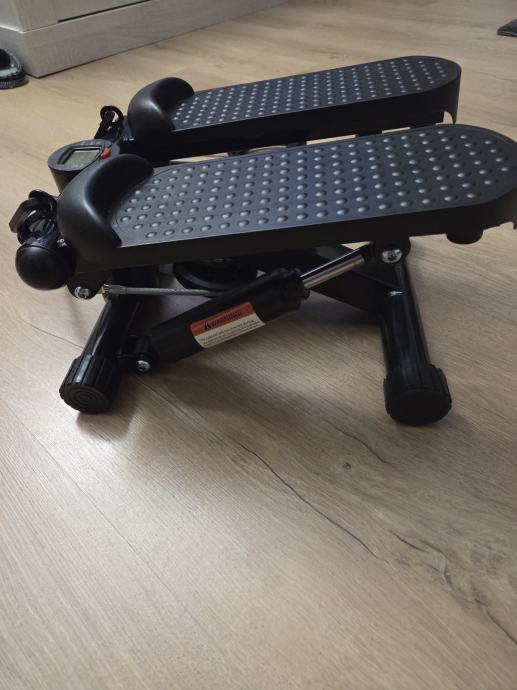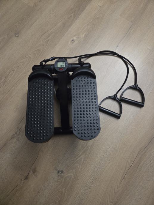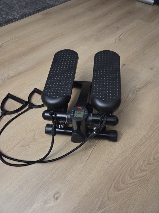 Prodajem novi fitness steper crne boje s ugrađenim digitalnim ekranom koji prikazuje osnovne podatke tijekom vježbanja. Steper dolazi s elastičnim trakama s ručkama za dodatni trening gornjeg dijela tijela. Platforme za noge imaju protukliznu površinu, a konstrukcija je stabilna zahvaljujući čvrstim nogicama s gumenim podlošcima. Kompaktnih je dimenzija pa ne zauzima puno prostora.