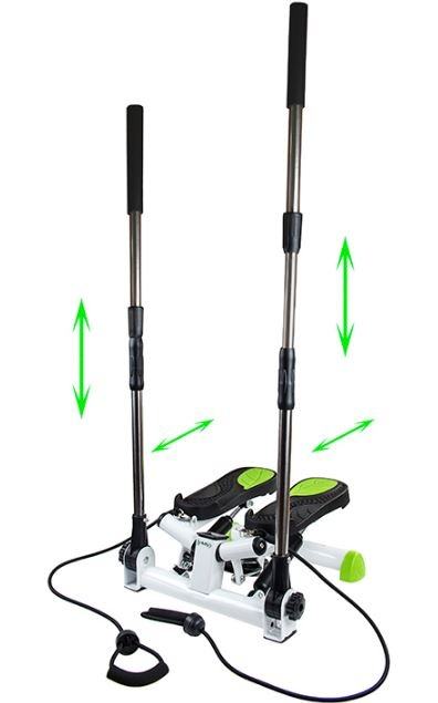 Tijekom vježbanja na novom HMS stepperu simuliramo nordijsko hodanje pomoću ručaka – palica. Također moguće je podesiti visinu palica i njihov stupanj otpora po volji. Isto tako podešavamo stupanj otpora steppera. U prilog dobijate također i elastične trake za ruke! Vježbajući na njemu stimuliramo bokove, noge, ruke, zadnjicu i trbuh. Novi stepper omogućuje dobar cardio trening cijelog tijela. Na ekranu je moguće slijediti čas vježbanja, broj ponavljanja, uporabu kalorija, scan.Dimenzije: 41 x 46 x 22 cmRučke sa podesivim otporom i podesivom visinom: 102 - 138 cm2 elastike priloženeDozvoljena težinakorisnika: 100 kgTežina: 9,5 kg