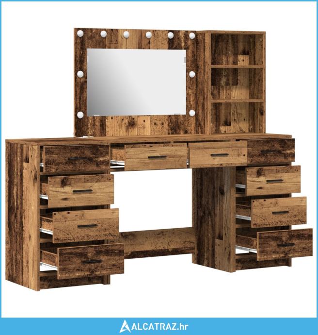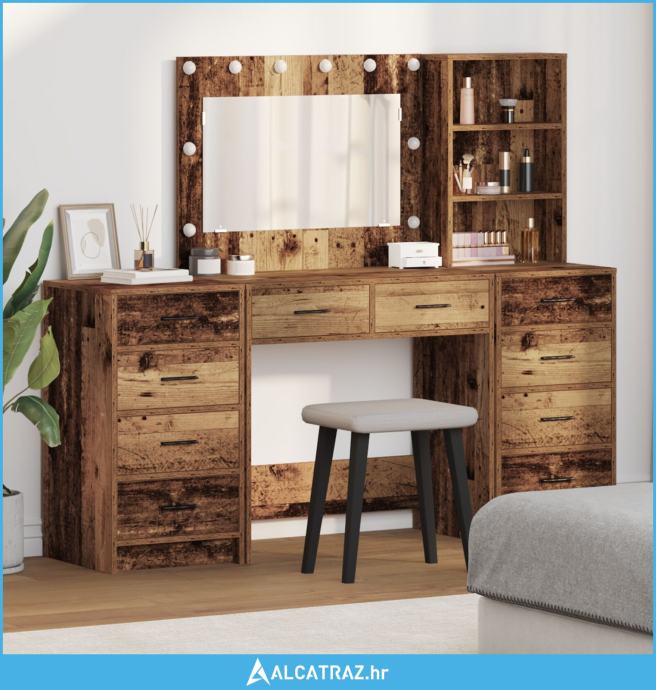 3-dijelni set toaletnog stola s LED staro drvo konstruirano drvo - NOV