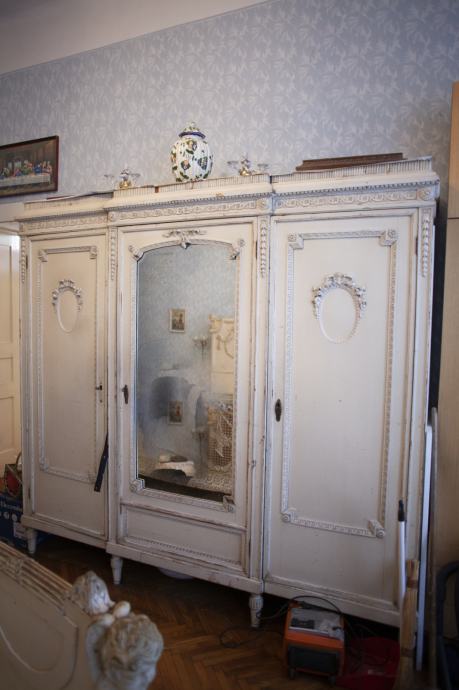 Ormar, stolić, krevet, stolić za šminkanje i dva noćna ormarića.