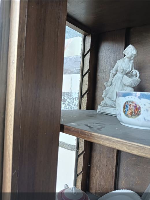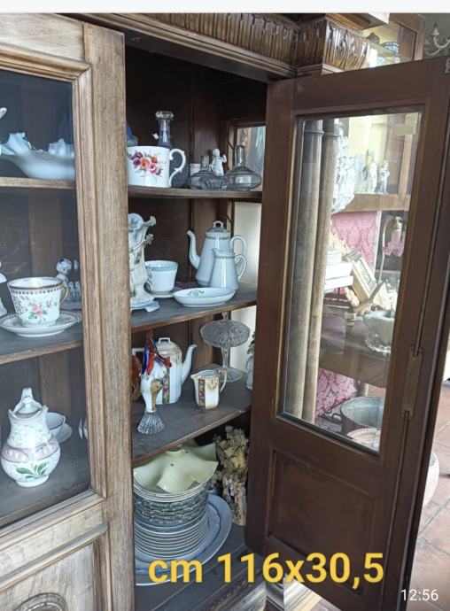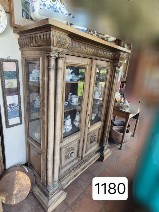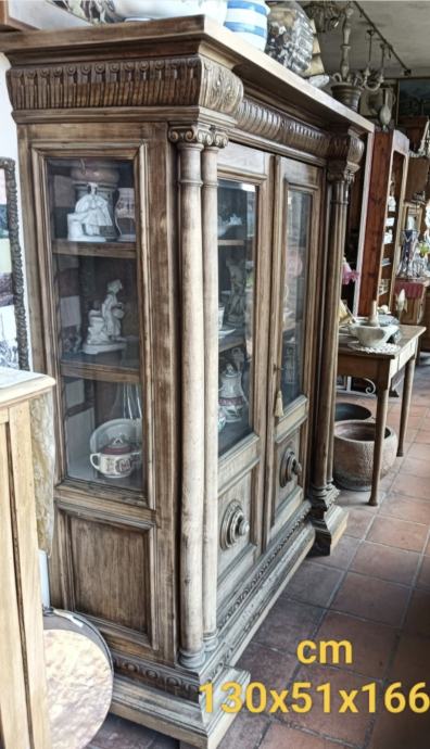 Antikna vetrina bogate izrade i u suhom čistom i prašnjavom....naravno da binidealno bilo ju obnoviti mslo ali to prepustim kupcu na biranje ...prodaje se u stanju u kojem je..stara ..s time i malo crvi