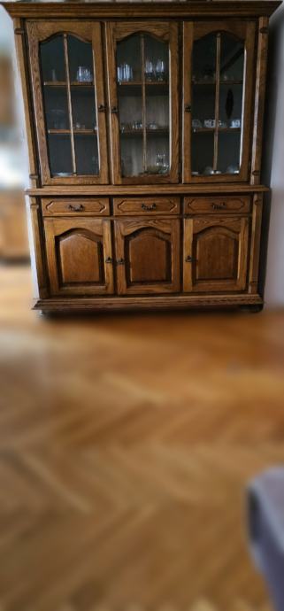 Antikna vitrina, hrast puno drvo. Očuvano i održavano, bez oštećenja.