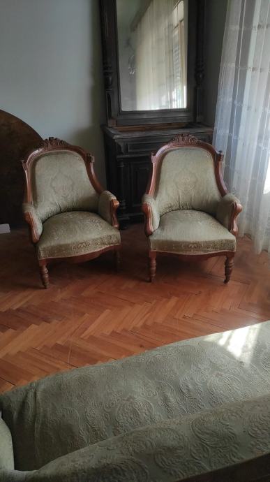 - Komplet sofa (d160/v100/š68) + 2 fotelje s naslonom za ruke (d70/v96/š75) + 4 fotelje bez naslona za ruke (d58 /v90/š60)