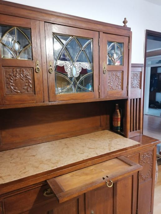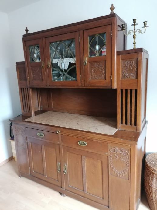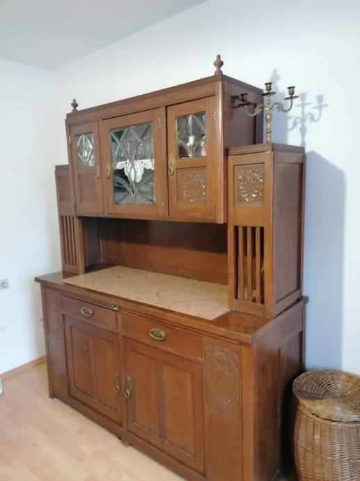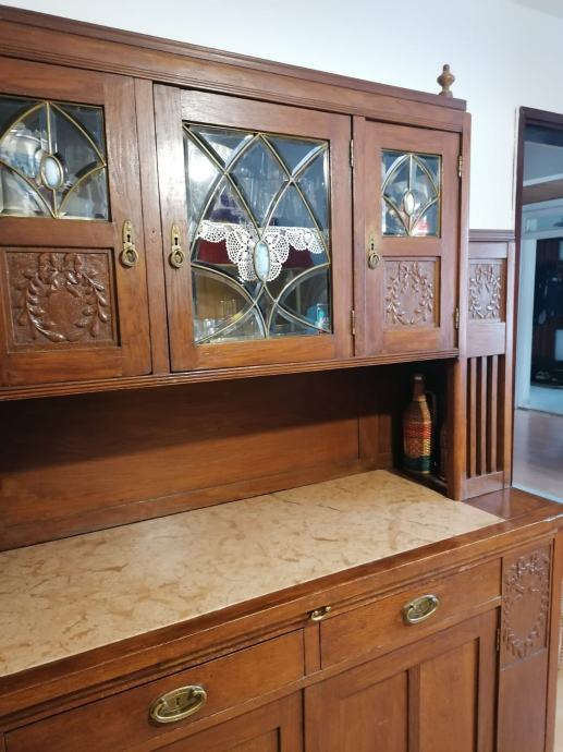 Prodajem antiknu vitrinu od punog drveta, cijena 700 eura, visina 180cm,duljina 160 cm,sirina 60 cm, detalji na upit. Telefon 098 928 4128.