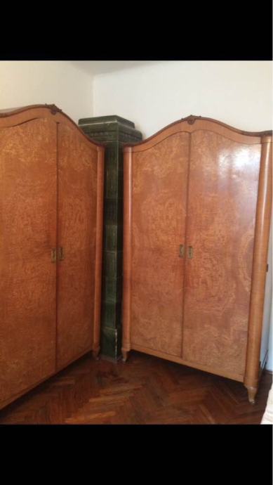 Starinski (antikni-stilski) namjestaj sa samog početka XX stoljeća prodajemo! Sastoji se od 2 ormara, dva noćna ormarica, dva kreveta te damskog ormarića sa ogledalom (psiha). Ukupno 7 komada namještaja. Izuzetno odobro očuvano. Jedinstveno na tržištu. Sve izrađeno od kvalitetnog drveta - ptičjeg javora. Porijeklo -Austrija.