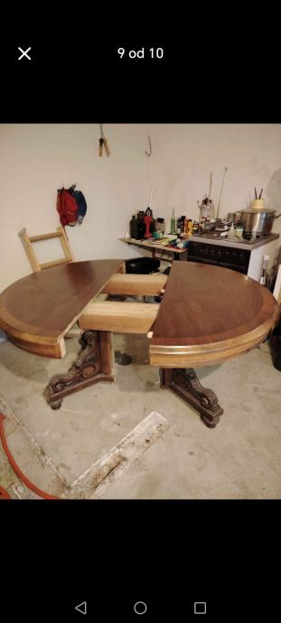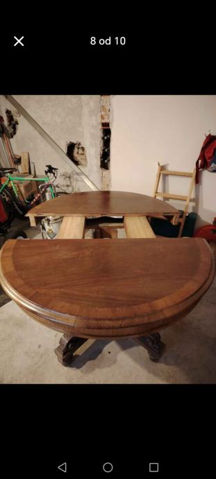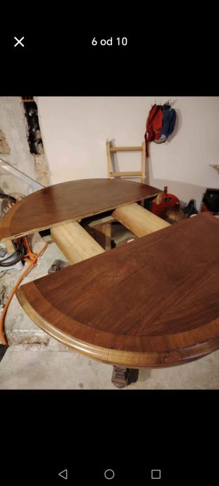 Prodaje se masivni drveni stol, puno drvo (trešnja, orah), sa zanimljivim i bogato ukrašenim donjim djelom. Stol je očuvan.