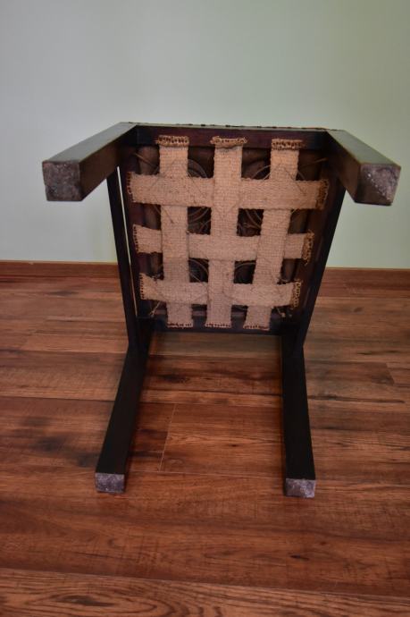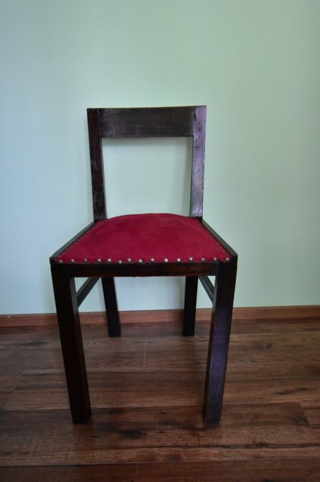 Stara art deco stolica, masivno drvo, jako čvrsta, obnovljena i pretapecirana