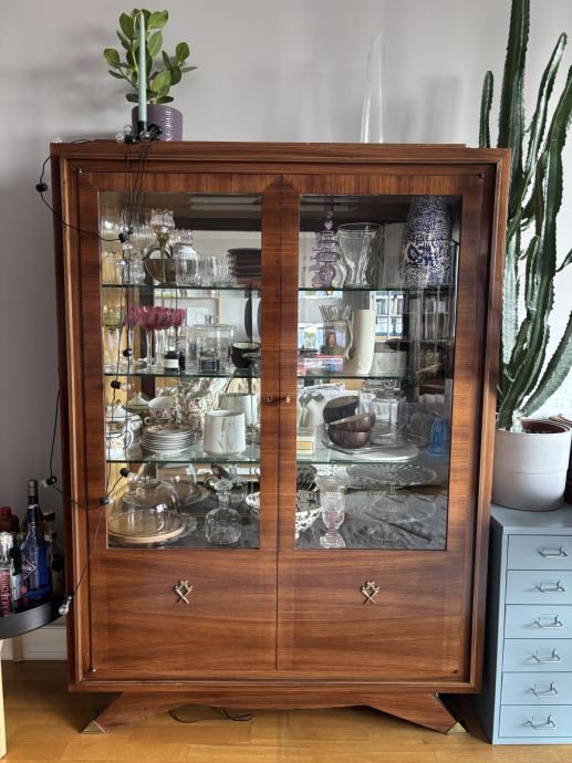 Divna Art Deco vitrina u vrhunskom stanju, bez ikakvih oštećenja s lampom unutra i ogledalom.
