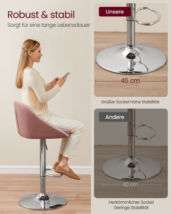 Sjednite na veliki, dobro podstavljeni jastuk (debljine 5 cm), podesite visinu sjedala, stavite noge na oslonac za noge - uživajte u udobnom iskustvu sjedenja ove stolice u potpunosti. Površina PU sa stražnje strane može se lako očistiti krpom. Navlaka jastuka je skidiva i može se prati ručno, ali ne smije se prati u perilici. Pričvrstite plinski cilindar na sjedalo i bazu - sve što trebate učiniti je pritegnuti 4 vijka i vaša bijela računalna stolica je spremna. Flis prednja i PU stražnja strana usklađene su bojama, dajući ovom barskom stolcu jedinstven stil i elegantan izgled. Molimo sjednite! Ne brinite o stabilnosti ove barske stolice. 45 cm d veća baza, uparena s visokokvalitetnim plinskim tlačnim cilindrom, nudi pouzdano držanje. Za sve informacije nazovite na broj telefona 092/399-75-19