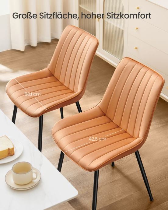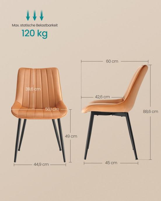 Blagovaonski stolac ima veliko sjedalo (50,1 cm široko, 42,6 cm duboko) i jastuk za sjedenje podstavljen je pjenom debljine 6,3 cm, što osigurava ugodno iskustvo sjedenja. Opustite se bezbrižno na ovoj kuhinjskoj stolici! Čelične noge okrenute prema van nude visoku stabilnost. A podesive univerzalne noge osiguravaju dobru stabilnost čak i na blago neravnim podovima! Zahvaljujući jednostavnoj strukturi, sastavljanje se odvija u samo 3 koraka. U zadnjem koraku pritegnite sve vijke i imate stolicu na raspolaganju. Uštedite vrijeme i trud i uživajte u opuštajućim trenucima! Ergonomski dizajnirani naslon ove stolice čvrsto prianja uz vaše tijelo i smanjuje pritisak na vaša leđa, povećavajući udobnost pri dugom sjedenju. Prošivena površina u karamel smeđoj boji, metalne noge u crnoj boji - nepobjediva kombinacija. Daje i tapeciranoj stolici i vašem domu moderan štih. Za sve informacije nazovite na broj telefona 092/399-75-19