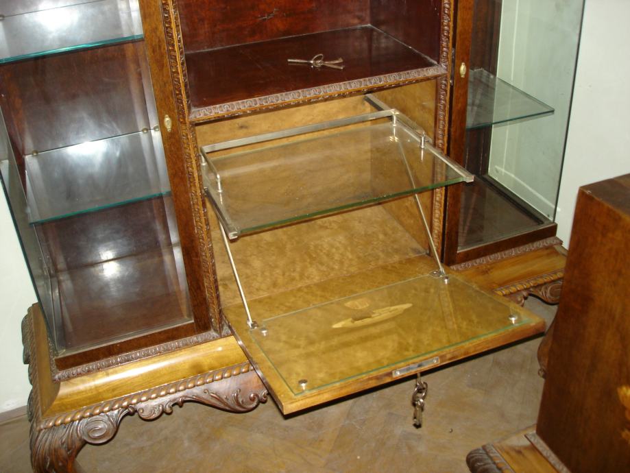 Namještaj je izradila škola primijenjene umjetnosti i dizajna u Zagrebu tridesetih godina prošlog stolječa.