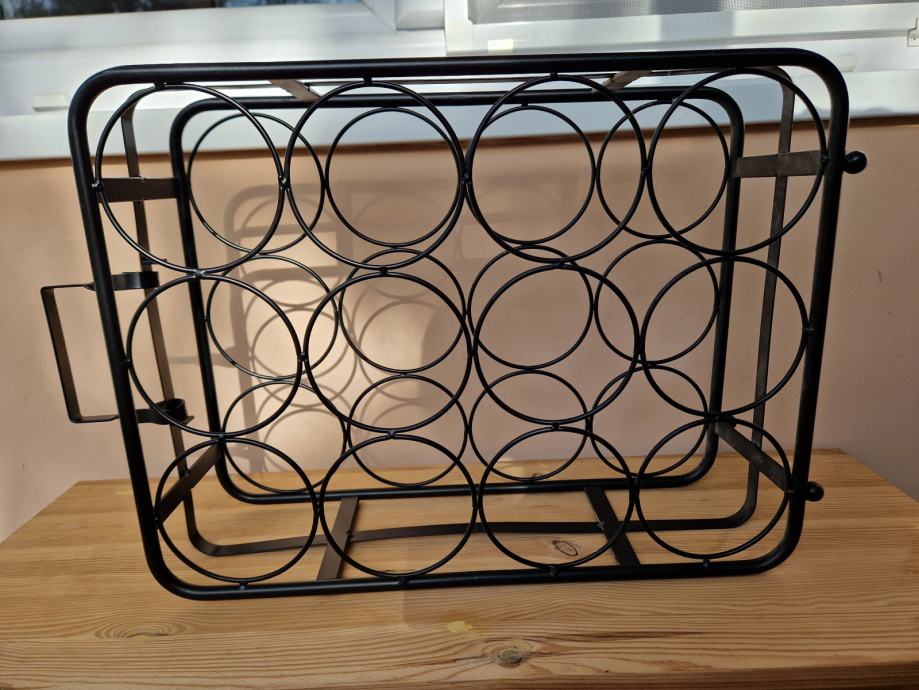 Prodajem crni metalni stalak za vino, lijep i jednostavan. Vrlo malo korišten.